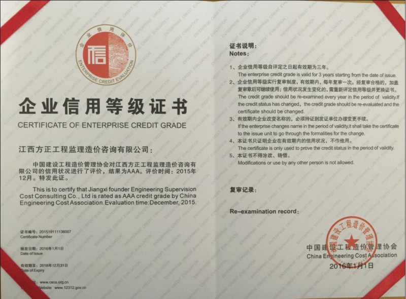 江西方正工程監(jiān)理造價咨詢有限公司于二OO三年五月在南昌市工商行政管理局注冊(注冊號:360100210024211),成立的有限責任公司,先后取得建設部及江西省建設廳頒發(fā)的建設施工工程造價咨詢企業(yè)資質(zhì)、招投標代理機構資質(zhì)、工程監(jiān)理資質(zhì)及江西省財政廳頒發(fā)的采購代理資質(zhì),是專門從事工業(yè)與民用建筑工程造價咨詢、工程建設招投標代理、工程監(jiān)理及采購代理的公司。
